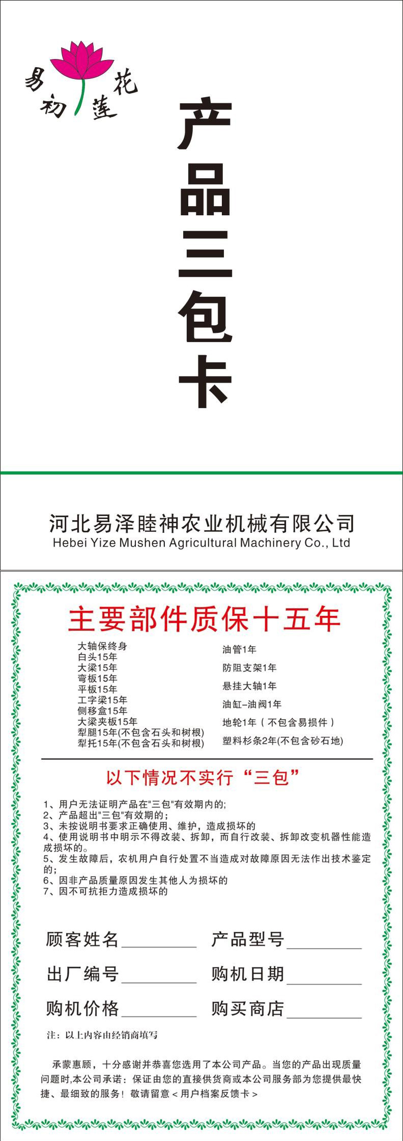“Yichu Lotus”Hydraulic Reversible Plow Global Warranty Commitment: Fifteen-Year Promise, Lifetime Protection—Defining Long-Term Value Through Science and Trust.